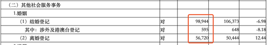 10月22日,北京市民政局公布《2019年社会服务统计季报表(三季度)》,报表显示,前三季度,北京结婚登记98944对,同比减少6.98%,离婚登记56720对,同比增长12.44%。