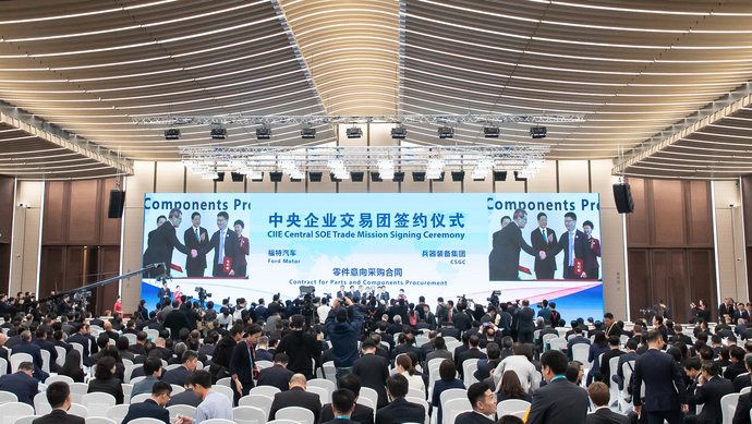 开幕式上,中国一汽、鞍钢、中国宝武等15家中央企业分别与大众汽车、卡拉拉矿业、力拓等外企签署了特色进口采购大单。