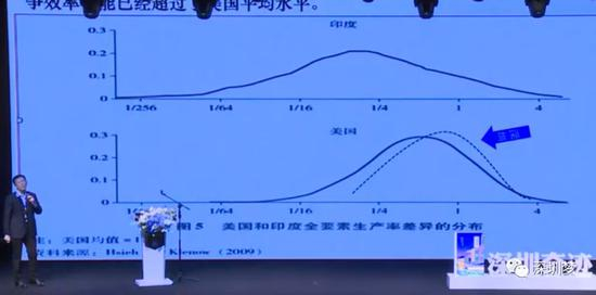 这张图做了一个美国和印度的比较,印度最好的企业创新对企业的贡献0.2,美国最好的企业创新贡献也不到0.3,但是美印之间的差别是大量印度企业不创新可以活着,美国企业不创新就不能活。中国大概在印度和美国之间,深圳一定处在中国和美国之间。我们最近研究了7000家深圳企业五年的数据,最后发现深圳样本企业创新生存水平超过美国的平均水平。我们现在是两个制度,一个是分工制度,一个是竞争制度,竞争促进了不断创新。
