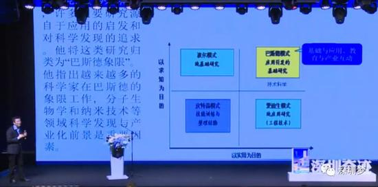 爱迪生模式是另外一种模式,爱迪生没受过很好的教育,利用现有的科学知识不断地探索。巴斯德是发现疫苗的人,他受过大学教育,知道发酵,看到因为发酵可以产生免疫作用,他是偶然发现的,因为具有成熟的知识得以大规模研发和生产疫苗,这就是大学和科学、大学和产业。这是深圳下一步要做的。当然还有纯基础研究,比如陈景润,我们现在谁也不知道哥德巴赫猜想破解值多少GDP,但是他训练了一代又一代科学家。我们中国到目前为止很多都是形而下的,不关注形而上的东西,但是我们如果没有形而上,就不会有科学的突破。