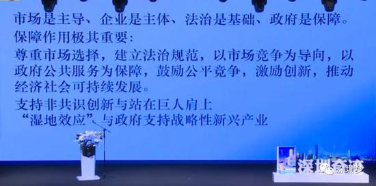 深圳的做法,总结下来是这样的,市场是主导,企业是主体,法治是基础(市场经济就是合约经济),政府是保障。政府提供公共服务保障,保障合约的履行,政府推动建设发达的法治环境。我在人大工作过,法治不在于立不立法,而是立法技术,为什么深圳有这么大的自由裁量权?如果某个事没看清楚,那先拿法律当教育文本,出了问题视情节严重罚款多少,立法过程是不成熟的,深圳这些年和全国不一样的是这个地方。