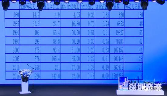 深圳统计年鉴的数据,1980年到2016年,深圳的劳动力从15万增长到了大概1000万。1980年,深圳的劳动力三分之一在企业,三分之一在非企业,包括当年的自然村、小镇,那时候国企员工占比83%。