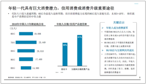 目前,消费对中国经济增长的作用越来越重要。《报告》指出,年轻一代巨大的消费力背后,信用消费成为消费升级的主要途径。与此同时,年轻人尤为需要注意的是,信贷产品的合规性以及避免非理性消费“陷进”。