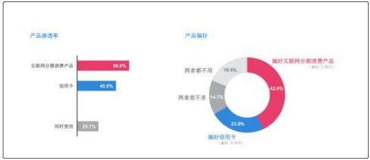 调研发现,由于互联网分期消费使用更方便、支付更便捷,分期数量更灵活等优点,目前在年轻人的渗透率达到60.9%,高于信用卡的45.5%。另一方面,额度是互联网分期消费产品的主要劣势,当年轻人需要较大金额的消费时,依然会更多地选择信用卡。
