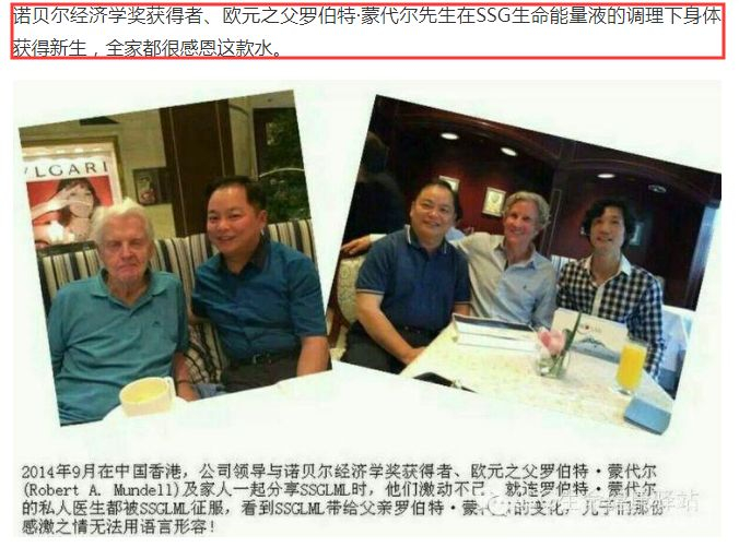 每经小编(微信号:nbdnews)注意到,中资创联大力宣传一个远古海洋水的故事,并称“SSG生命元素能量液”是全世界唯一的量子级的产品。
