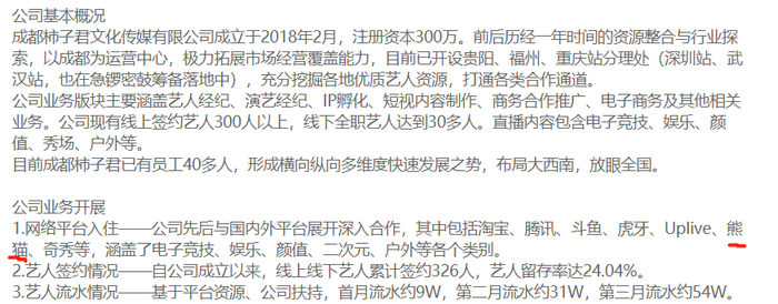 截至发稿,每经小编(微信号:nbdnews)并未找到成都柿子君文化传媒有限公司的最新表态,但从过往招聘信息来看,该公司也与熊猫直播有过交集。