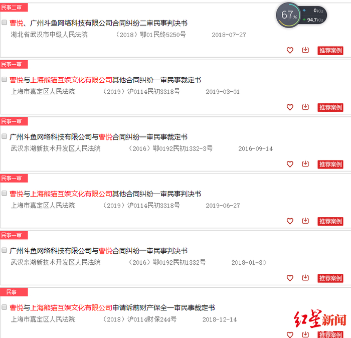 此前,中国裁判文书网相关判决书显示,2018年1月30日,武汉东湖新技术开发区人民法院就广州斗鱼网络科技有限公司与曹悦合同纠纷做出一审民事判决,判曹悦赔偿斗鱼网络360万元损失及相关报酬、收益156173.79元,曹悦不服该判决提出上诉。