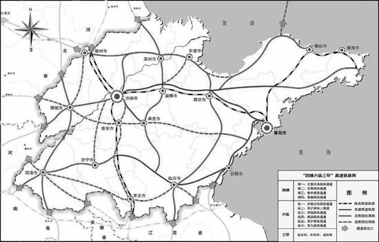 2018年9月,《山东省综合交通网中长期发展规划(2018-2035年)》正式印发。其中提出,通过加密、提速、扩通道,形成以“四横六纵”为“主骨架”高铁网络布局。