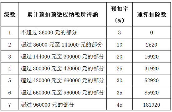 个人所得税预扣率表一