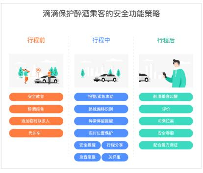由于醉酒场景下,司乘冲突频频发生,滴滴针对醉酒乘车推出了一系列安全保障措施,并建议醉酒乘客打车时让清醒的亲友陪同出行。