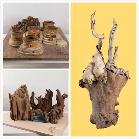 任志强的这些作品,用的木料,除了潘石屹提供的带有各种疤痕的烂木板之外,更多的是用了从阿拉善沙漠带来的枯木头、从四川寄来的竹根头、从紫竹院公园垃圾堆里挑选出的黄杨木枝、从公司管理的园林中捡出的垃圾、还有从潘家园和高碑店购买的各种枯木头。