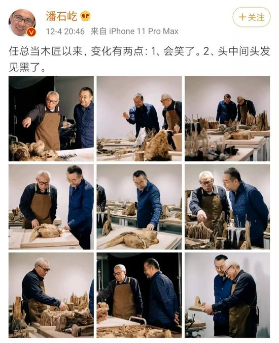是否获得了精神净土,我们不得而知,但“木匠”活的确给了任志强前所未有的快乐。潘石屹在微博中发了一组“木匠”任志强的九宫格,并配上了一段文字:“任总当木匠以来,变化有两点:1、会笑了。2、头中间头发见黑了。”
