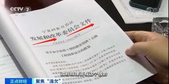 宏盛建业公司项目合伙人 郎加龙:这是宁夏回族自治区发改委文件。这个是发改委立项的,政府照理说有这个钱,立项工程必须保证资金都到位的,结果工程搞了一半我们才知道,永宁县没有这笔资金。