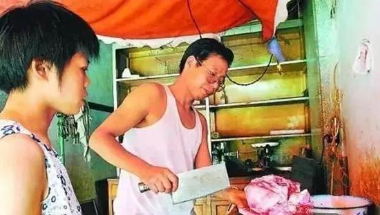后来,他在自传《屠夫看世界》中回忆道,肉摊上苍蝇乱飞,血水横流,肉腥气刺鼻,自己只能穿着短裤拖鞋站在铺里。手上是常年洗不净、后来就索性不洗的猪油。