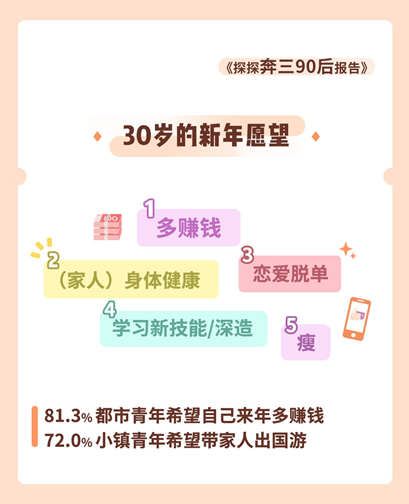 这一批有着共同回忆的奔三“90后”的在30岁这一年的新年愿望会是什么?赚钱!
