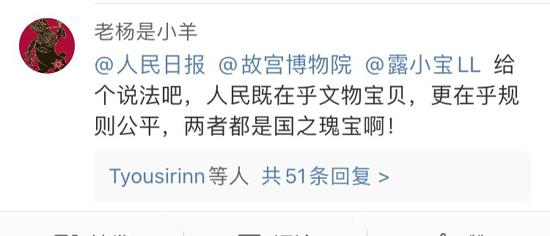 不少网友@故宫博物院 官方微博,要求其出面做出解释并公布处理结果。