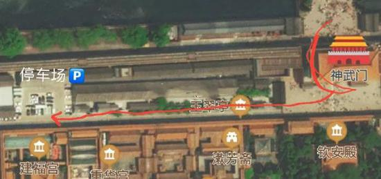 这一位,是从东华门进到内部停车场。“汽车的宽度刚刚能穿过宫门,再宽一点的车就要收回倒车镜了”。