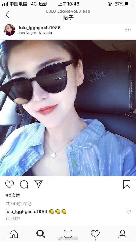 1月19日,故宫奔驰女高露(露小宝LL),在ins重新炫富,高露在ins账号上连续发了一张自拍和所开的奔驰车视频,还回了网友三颗柠檬。当天高露更新社交应用ins高调炫富,发布的定位显示在拉斯维加斯。网友发现,该账号被曝光后,一度删去所有帖子,如今又开始活跃了。