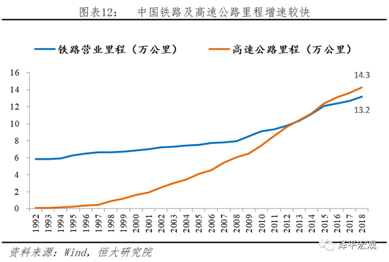 城镇化率提高代表着城镇扩容的过程,市政工程、地下管廊等城市基础设施的新建和改建需要大量资金。2018年,我国常住人口城镇化率以及城镇常住人口分别达到59.6%和8.3亿人。此外,为促进区域间资源、人口等要素的流通,提高区域经济发展的协同性,我国的铁路与高速公路运营里程在不断增加。2018年,中国铁路与高速公路运营里程分别达到13.2万公里和14.3万公里,两者在2014-2018年的平均增速分别为4.2%和6.2%;铁路和高速公路建设是中国基建持续推进的一个缩影,建设过程中产生的资金需求大部分由政府部门借债支撑。