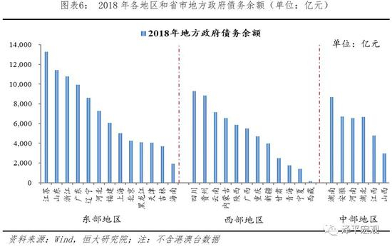 分区域看,东部经济发达省份,虽债务规模大,但GDP规模大,债务率较低。西部地区负债率显著高于东部和中部地区,处于经济发展水平尚未提升但政府负债过高的阶段。另外,促进经济发展又需要政府适当举债,西部省份的举债空间正逐步缩小,经济发展程度与政府债务不适应。中部地区地方政府债务占GDP的比重整体安全可控,其中湖南的债务率较高,偿债能力有限。东北地区,辽宁经济相对落后,加之沉重的养老负担,经济转型困难,政府债务率靠前,限制了政府的举债能力,也提高了举债融资成本。