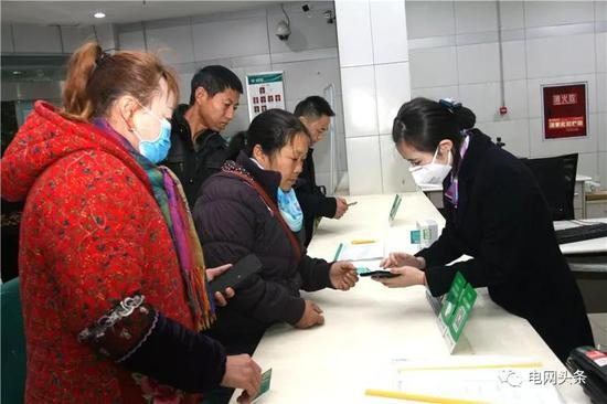 1月24日,安徽池州青阳县供电公司员工王炎向客户介绍网上交费流程。(章锦秀)
