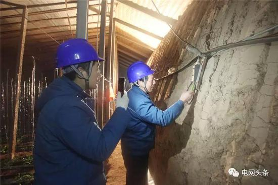 1月24日,山东临沂兰陵供电公司员工马清泉、张龙矿在坑镇棠林村蔬菜大棚为客户排除用电设备故障。(陈立云)