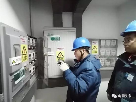 1月24日,湖北随州广水供电公司员工杨斌、潘美到市第一人民医院检查配电设备。(陈丹 胡杰)