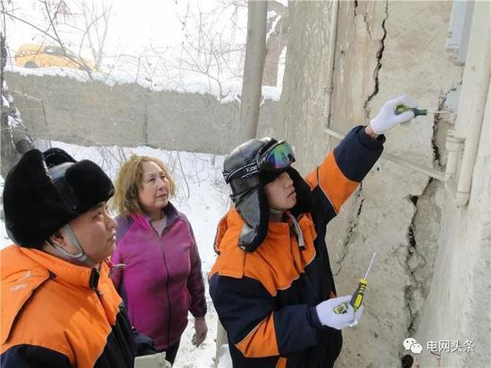 1月24日,新疆昌吉阜康供电公司员工顾可心、冯强在九运街镇五运五队为村民处理电表故障。(杨全力)