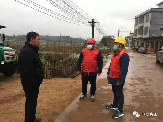 1月24日,湖南永州蓝山供电公司新圩供电所员工雷尖虎、李和平向村民介绍安全用电知识。(成小英)