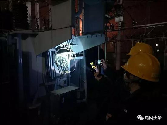 1月24日,四川南充南部县供电公司员工何伟、敬小君在35千伏大桥变电站为1号主变压器测温。(李桂武 曹汉平)