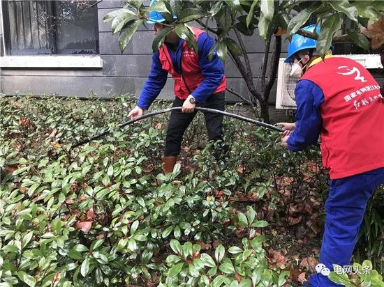 1月25日,浙江杭州供电公司滨江供电分公司红船共产党员服务队队员为滨江区浦沿街道南都江滨花园小区客户抢修用电设备。(李哲 汪闻涛)