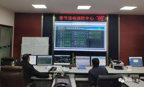1月24日,湖北黄冈黄梅县供电公司值班员工在应急指挥中心值守。(程耿)