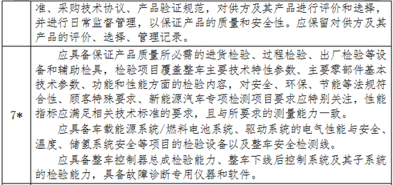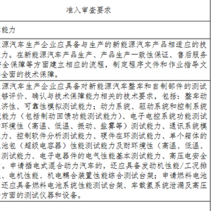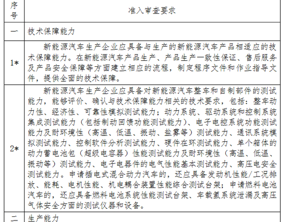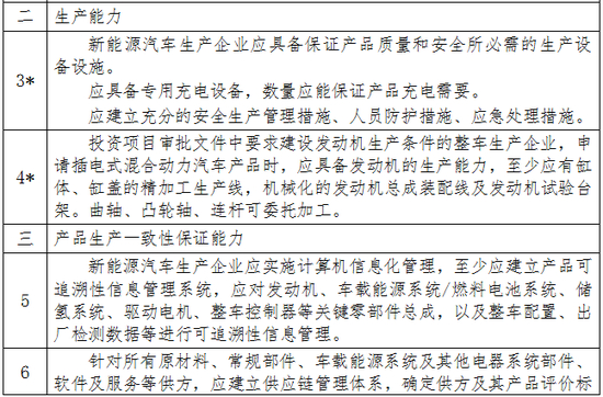 注:1.申请新能源汽车生产企业准入的企业,如已按照相同类别的常规汽车生产企业准入管理规则通过审查,则对相关要求免予审查。
