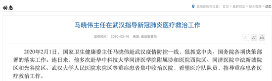 2月16日,国家卫健委官网公布了一则马晓伟的消息——