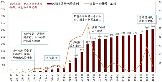 截至2月16日24时洪湖累计确诊数据,图片来源:中金公司研究部