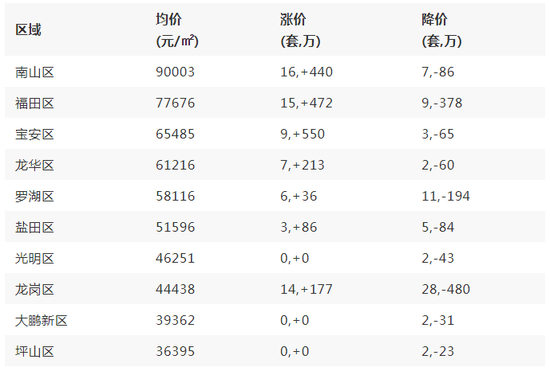 ▲上周区域涨跌 截图来源:数说深圳二手房