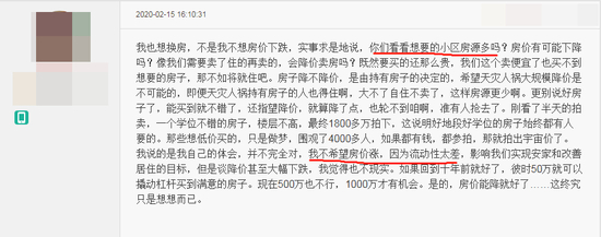 “我想买新房,就等着疫情后降价,我心里预估了一个比较客观的价格,知道市场降价幅度大是不太可能的,但是房企再出优惠政策,一旦接近我心里的这个价格,我会马上入手。”乐居购房群陈女士信心百倍的说道。