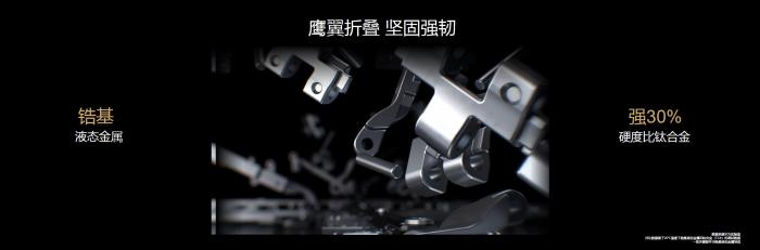铰链:华为MateXs的铰链系统拥有超过100个器件,使用锆基液态金属等材料极大提升铰链强度。