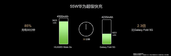 电池:华为MateXs搭载4500mAh大容量高密度电池,续航时间提升21%。华为MateXs还支持55W超级快充技术,30分钟即可充电85%。