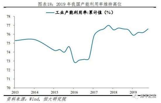 “三去一降一补”成果稳固。去产能方面,2019年全国工业产能利用率为76.6%,较上年提高0.1个百分点。其中,黑色金属冶炼压延加工业及煤炭开采洗选业产能利用率分别为80%和70.6%,分别比2018年提高2和0个百分点,均为近几年来最高水平。去库存方面,2019年末商品房待售面积49821万平方米,较去年减少2593万平方米,相当于2013年末的水平。待售面积同比从2015年初的24.4%迅速下降至2019年-4.9%。去杠杆方面,宏观杠杆率稳定,微观杠杆率国有控股企业资产负债率下降。2019年末,规模以上工业企业资产负债率为56.6%,比上年末下降0.2个百分点。其中,国有控股企业资产负债率为58%,比上年降低0.7个百分点。降成本方面,2019年减税降费超过2.3万亿元,较2018年增加1万亿元。补短板方面,薄弱环节投资较快增长。2019年生态保护和环境治理业和教育固定资产投资(不含农户)分别比上年增长37.2%和17.7%,增速分别快于全部投资31.8和12.3个百分点。