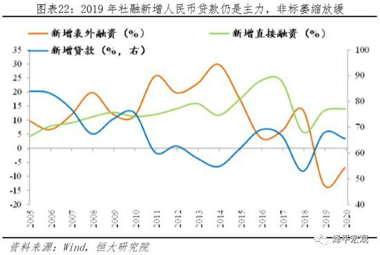 2019年中国处于金融周期顶部,流动性整体稳健、局部偏紧,货币金融政策以结构性宽松为主,社融和M2增速保持平稳。2019年末广义货币供应量(M2)余额198.6万亿元,增长8.7%;全年社会融资规模增量25.6万亿元,按可比口径计算,比上年多增3.1万亿元;年末社会融资规模存量251.3万亿元,增长10.7%。年末全部金融机构本外币各项存款余额193.6万亿元,比年初增加15.4万亿元。2019年中国宏观杠杆率有所提高,但是总体仍保持在250%左右的水平。截至3季度末,实体经济杠杆率251.2%,较2018年末提高7.5个百分点。其中,居民、非金融企业和政府部门杠杆率均有提高,3季度末分别为56.3%、155.6%和39.2%,较2018年末分别提高3.1、2.1和2.3个百分点。受金融监管趋严,资管新规、MPA考核、包商银行被接管等影响,表外不断收缩,民企融资难贵问题凸显。