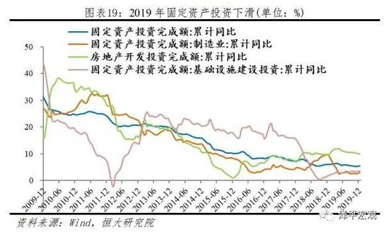 2019年固定资产投资增速下行,主要源于:1)419政治局会议强调“房住不炒”,房地产融资全面收紧、销售降温、土地购置大幅负增长,房地产投资持续缓慢下滑。2)2019年土地财政收入大幅下滑和减税降费使得地方政府财政吃紧,同时严控地方隐性债务,基建投资发力空间有限。3)全球经济增长放缓和中美贸易摩擦促使出口低迷,内外需均疲软导致PPI通缩、企业盈利下行,制造业投资持续低迷。疫情后逆周期调节加强和中美贸易摩擦暂缓将支撑2020年固定资产投资。一是专项债提前下达,基建发力托底经济。2月11日财政部第二次提前下达新增地方政府债务限额8480亿元,其中一般债务5580亿元,专项债务2900亿元,已达到法定授权范围的上限。同时,各地重大项目陆续复工,有望在二季度集中释放。二是中美贸易摩擦暂缓和海外经济有所好转利好出口和制造业投资,同时2019年中央经济工作会议强调增加制造业中长期融资,打造先进制造集群,有利于制造业投资在低位企稳。