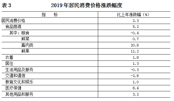 价格:全年居民消费价格总水平比上年上涨2.3%。其中,食品价格上涨6.2%,非食品价格上涨1.6%;消费品价格上涨2.2%,服务项目价格上涨2.5%。