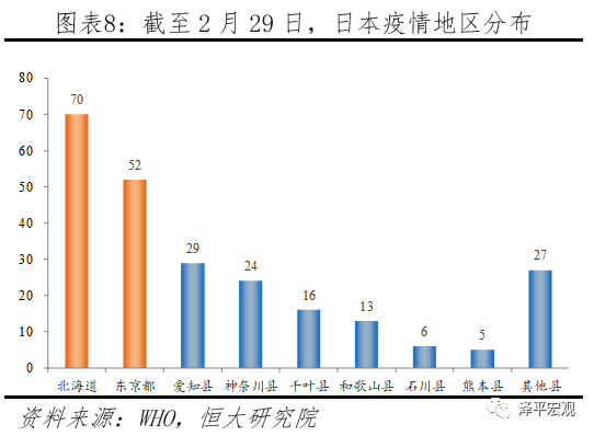 日本疫情因“钻石公主号”扩散,出现小规模聚集性感染。日本的疫情具有其特殊性,大部病例来源于“钻石公主号”邮轮。日本确诊的947例病例中,705例来自“钻石公主号”邮轮已确诊,226人为日本境内感染患者,乘政府包机返回日本的14人。目前日本疫情也已由输入型转为国内多发局面,部分地区出现小规模聚集性感染,但尚未观察到大规模传播的区域。分地区来看,人口密集的东京都市圈患者最多,北海道累计确诊排名第二。