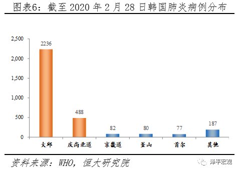 韩国疫情进入爆发期,宗教活动是疫情失控主因。根据华山感染披露,韩国疫情爆发可分为两个阶段。第一阶段为1月20日-2月17日,韩国成功控制输入性病例 ,且11日-14日连续三天无新增,将疫情控制在早期阶段;第二阶段为2月17日至今,韩国31号感染者参与了一场约1000名教徒聚集活动,疫情进入爆发期,累计感染者由31人迅速增加至接近3000人,其中韩国本地病例大规模增加。目前韩国的重灾区主要集中在大邱市和庆尚北道,确诊病例占比高达80%以上,目前的确诊病例大多为新天地教徒或与新天地教徒有接触史的患者。