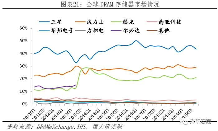 韩国是全球存储芯片、CIS图像传感器等核心零部件的重要供应国家。从类型来看,存储芯片是半导体最为重要的细分领域之一,2019年全球销售额达1059.1亿美元、行业占比25.9%,韩国为主要供应国家,提供包括DRAM、NAND闪存等在内的核心零部件。从DRAM市场来看,韩国连续多年全球占比超过70%,其中三星和海力士保持全球前二,2019年第四季度两者市场份额分别为43.5%和29.2%。从NAND闪存市场来看,三星与海力士依然具有强劲竞争力,2019年第四季度两者排名分别为第一、第六,全球市场份额依次为35.5%、9.6%。此外,三星也是CIS图像传感器的主要供应商,2018年全球CIS图像传感器全球排为第二、市场份额24%。