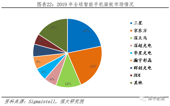 受半导体行业影响,作为重要的下游产业,消费电子行业也将间接受到影响。据Counterpoint统计,2019年全球智能手机出货量约为13.7亿台,中国市场销量份额约占30%、为全球第一。从市场占比来看,2019年第四季度全球市场份额前六位厂商分别为苹果(18%)、华为(包括荣耀,14%)、三星(17.6%)、小米(8.2%)、OPPO(7.8%)、VIVO(7.8%),华米OV市占率合计约40%。从构成来看,智能手机由芯片、显示屏、摄像头、功能件、结构件、被动元件和其他部分组成。其中芯片(35%-50%)、显示屏(10%-20%)、摄像头(10%-13%)三类零部件成本占比最大,对手机整体性能影响也最深。日韩疫情加重除了在半导体原件、核心零部件等造成影响外,在显示屏领域也将对全球价值链造成影响。从地区出货量来看,2019年智能手机面板市场出货17.8亿片,同比下滑4.9%,其中中国大陆保持第一、市场份额约45%,韩国第二、市场份额约23%。从参与公司来看,三星与京东方出货量相近,然而从下一代AMOLED显示屏生产情况来看,三星处于绝对领先地位,是苹果、华为等品牌高端显示屏的主要供应商,2019年AMOLED出货量约4.2亿片、全球市场份额达88%。京东方发展迅速,2019年AMOLED市场占比约3%,全球第二、大陆第一。但从影响来看,三星依然垄断高端显示屏市场,短期难以替代。