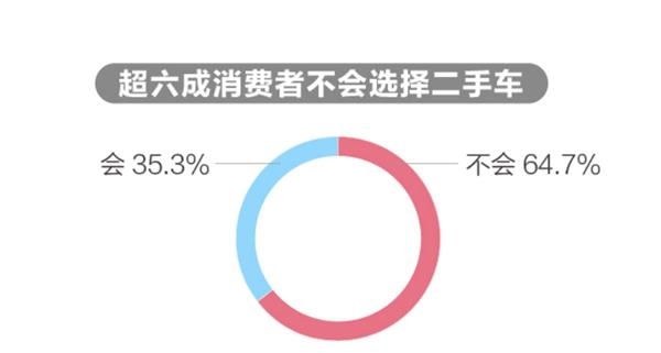 如果限购政策取消,有近四成消费者会选择在半年内购车,有近三成消费者会选择在一年内购车。大部分消费者更倾向于购买新车,仅有35.30%的消费者会考虑购买二手车。