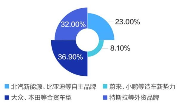 在新能源汽车的品牌选择上,大众、本田等合资车型成为人们首选,36.9%的受访者选择这类品牌,32%的受访者更青睐于特斯拉等外资品牌。在自主品牌中,诸如北汽新能源、比亚迪这类传统品牌更受欢迎,而蔚来、小鹏、威马等造车新势力还有待进一步提升品牌知名度。