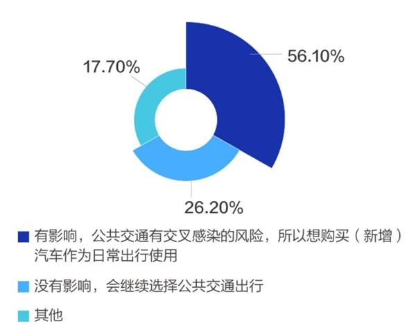 受新冠肺炎疫情影响,超过半数的消费者把驾车作为出行的主要方式。受制于疫情防控期间出行的便利性、安全性等多重因素,有超过半数的消费者产生了购车意愿。